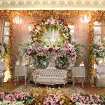 Pesanan paket catering pernikahan kali ini untuk 1000 porsi tamu undangan. Tema warna pernikahan kali ini adalah warna gold, salah satu warna klasik yang abadi untuk pernikahan. Warna gold membawa nuansa elegan pada pernikahan. Warna ini cocok sekali dengan gaun pengantin yang berwarna coklat gold. Pada catering pernikahan ini, mempelai mendapatkan 1 free stall khusus dari Resep Bunda Catering berupa chocolate fountain.