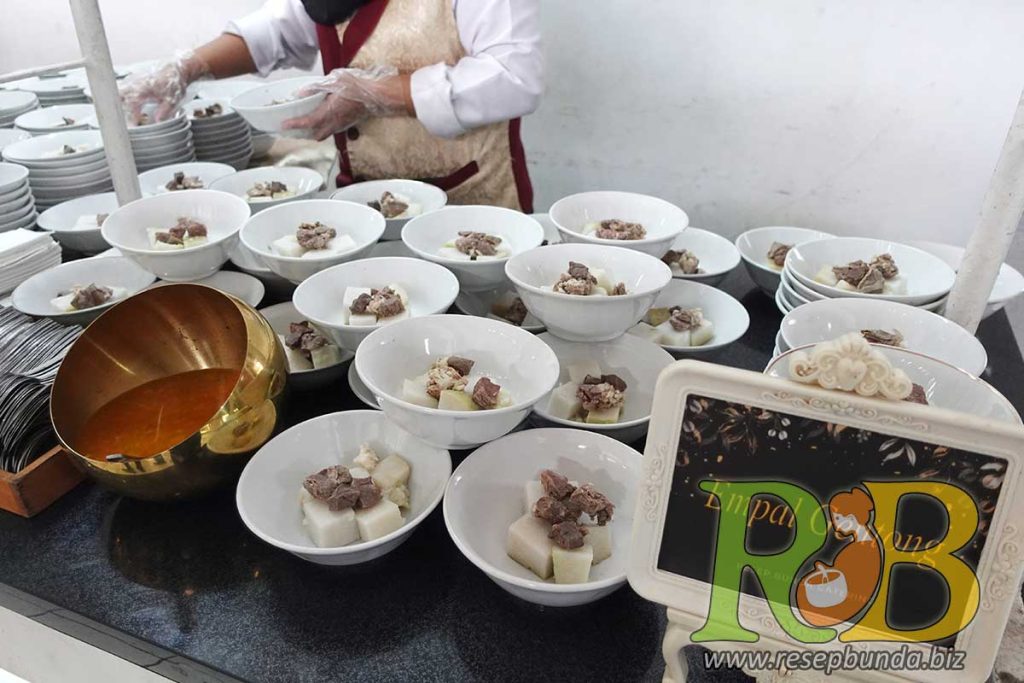 Paket catering yang dipesan untuk acara ini yaitu Paket Catering dan Dekorasi Beryl. Catering yang dipesan untuk 1000 porsi tamu undangan sehingga selain penyajian makanan yang lezat dari Resep Bunda, kami menyediakan berbagai properti dekorasi catering yang cantik dan menarik dengan tema modern dengan nuansa warna maroon & coklat.