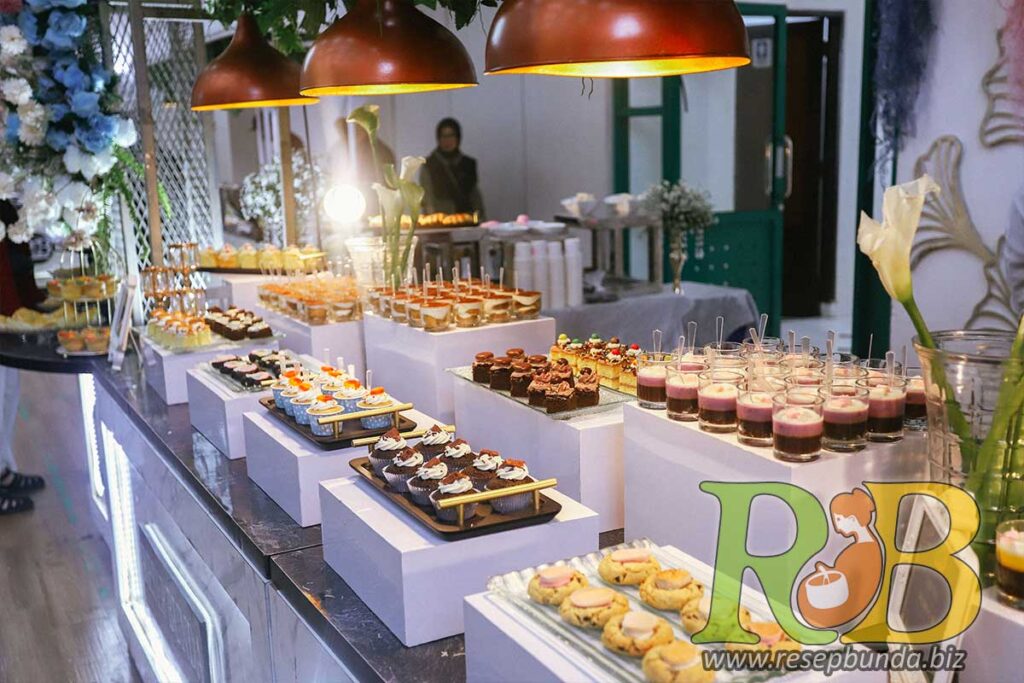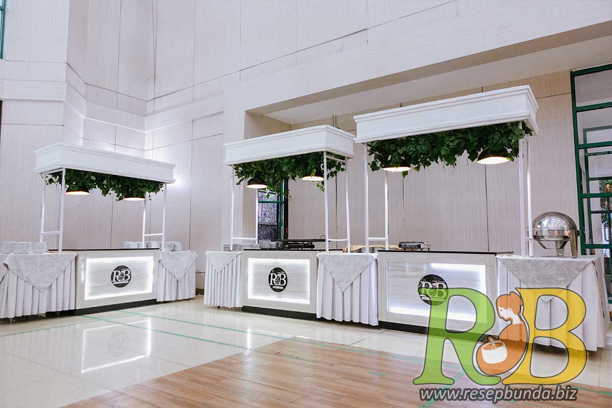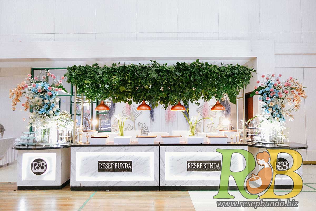 Paket catering yang dipesan untuk acara ini yaitu Paket Dekorasi & Catering dengan 1000 porsi tamu undangan yang kami sediakan sudah termasuk fasilitas area VIP pengantin, Mini buffet VIP, Meja & Alat buffet, Alat makan, Roundtable, Waitress, Clear up tidak lupa juga disertai dengan berbagai properti dekorasi catering yang cantik dan menarik disesuaikan dengan tema dari acara pernikahan ini yaitu modern.