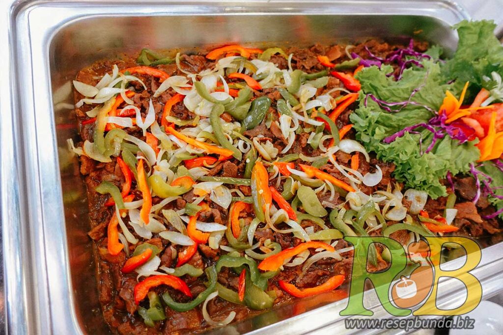 Buffet : Nasi putih, Sapi lada hitam, kakap asam manis, Sup kimlo, salad bangkok, Kerupuk, dan Air mineral.