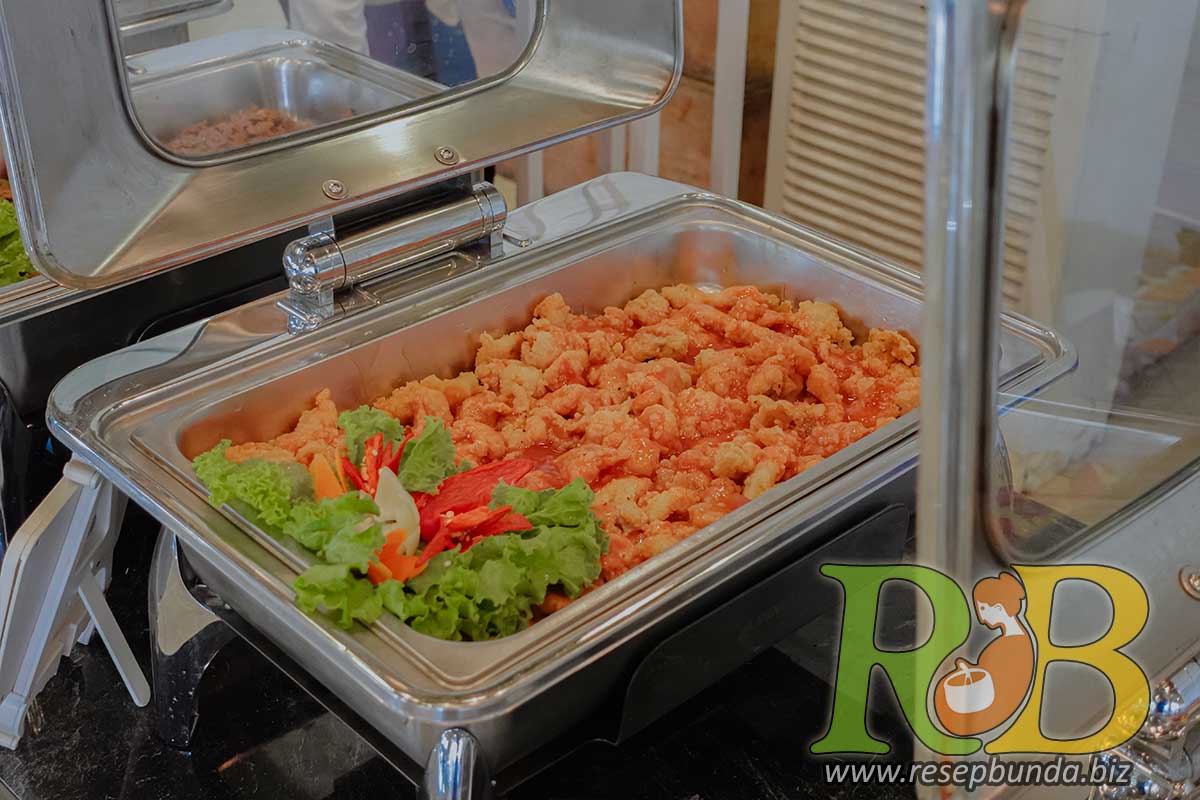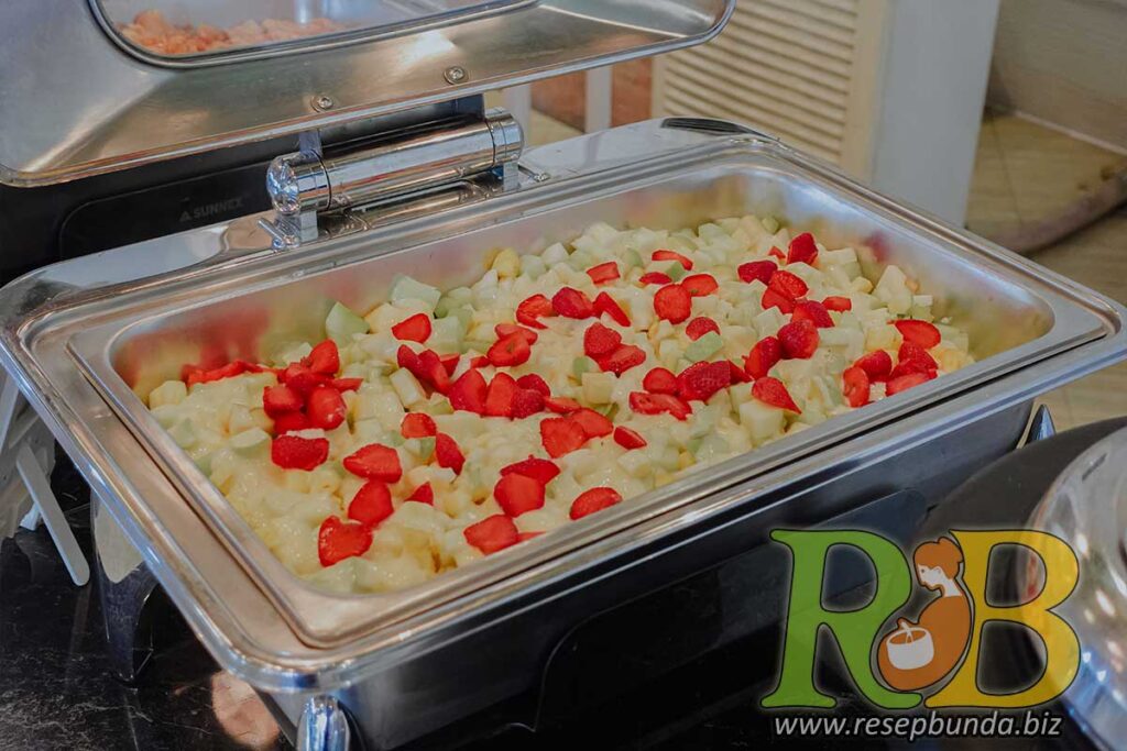 Buffet : Nasi putih, sapi cah paprika, kakap asam manis, sup ayam jamur, salad buah, Kerupuk, dan Air mineral.